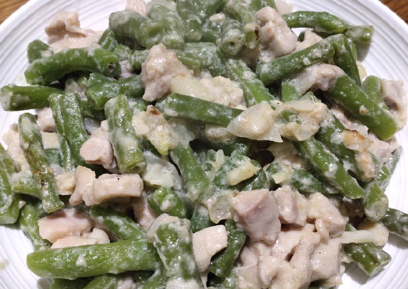 - Heat a pan pour oil then stir fry ginger garlic and shallot.Stir fry until fragrant then add the chicken and cook it until golden brown next the beans.Add a little water and cover to let the beans cooked.When its alreadt half cook pour the coconut cream simmer then done.