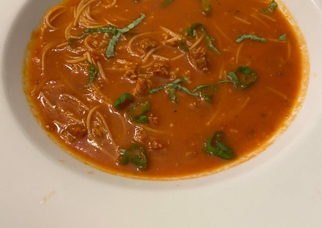 Sopa de Fideo is a classic Mexican noodle soup in a tomato broth. This is my version as I add chorizo and a little cream.