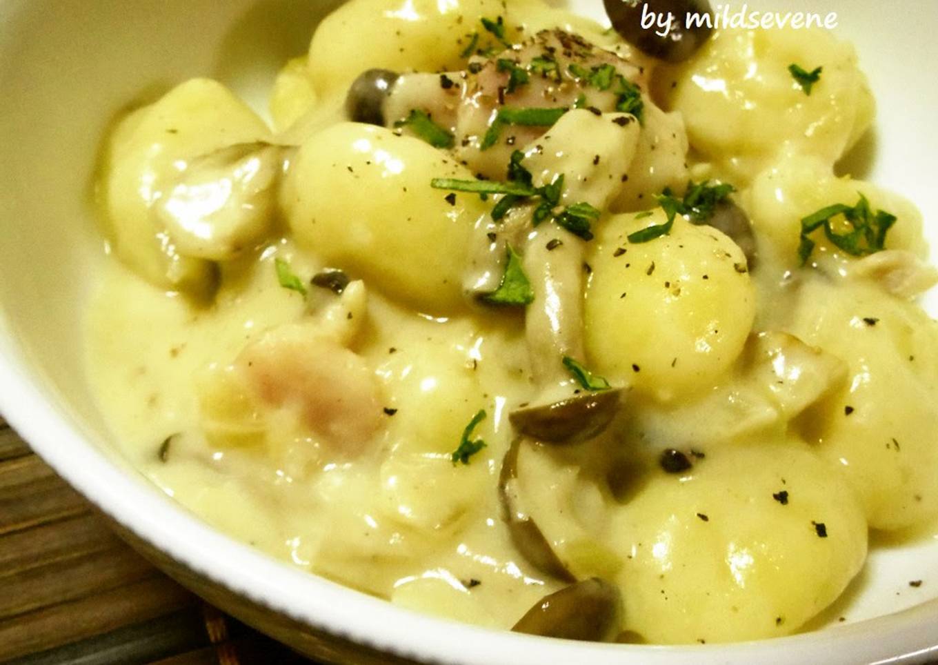 As for the number of servings that can be served to make Mushroom Cream Sauce Gnocchi is 4 servings. So make sure this portion is enough to serve for yourself and your beloved family.