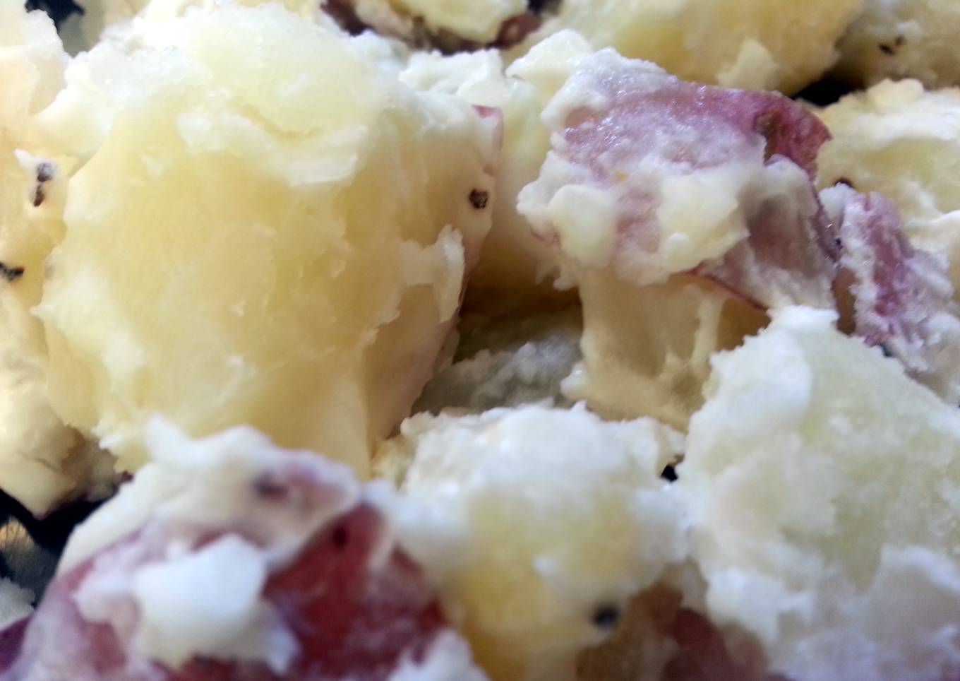 - Cover potatoes with cold water. Add salt. Boil until potatoes are easily pierced with a paring knife. Drain. Return potatoes to pot on high heat while shaking for 30 seconds to remove excess moisture. Remove from pot.