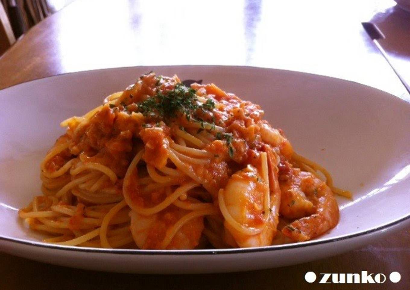 - Shrimp Tomato Cream: Heat olive oil in a frying pan and cook the chopped garlic and red chili pepper over low heat.