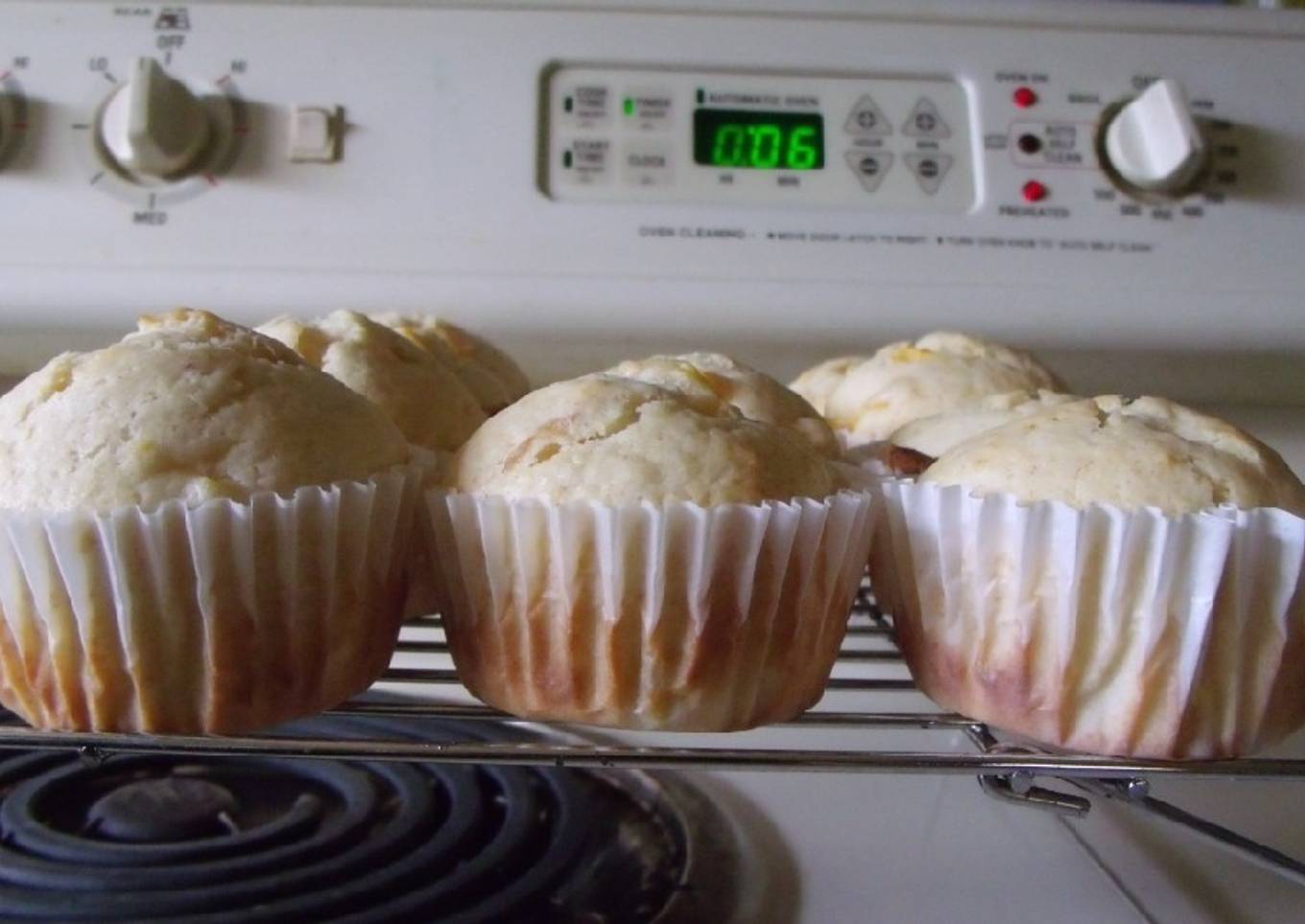 - Filled greased or paper-lined muffin cups three-fourths full.