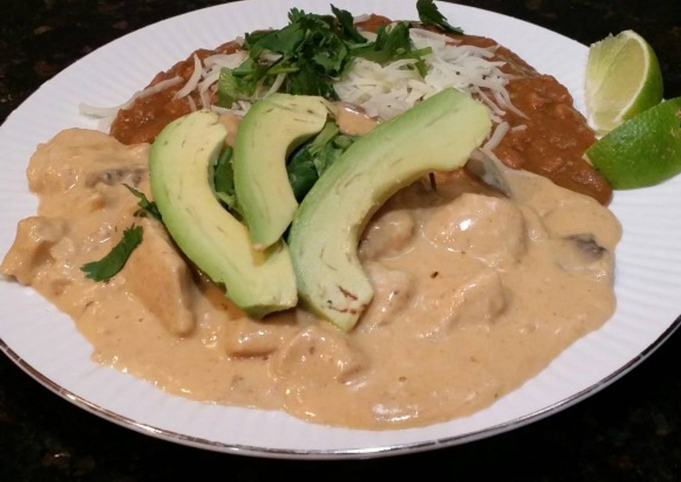 - Plate chicken. Add desired garnish. Serve with beans and rice if desired. Enjoy.
