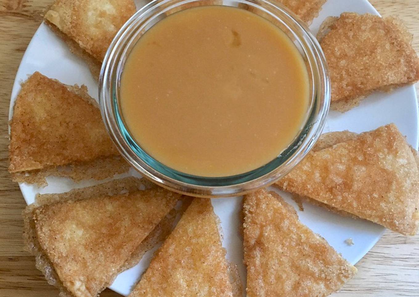 Brown Sugar and Cinnamon Tortilla Chips with Caramel Sauce