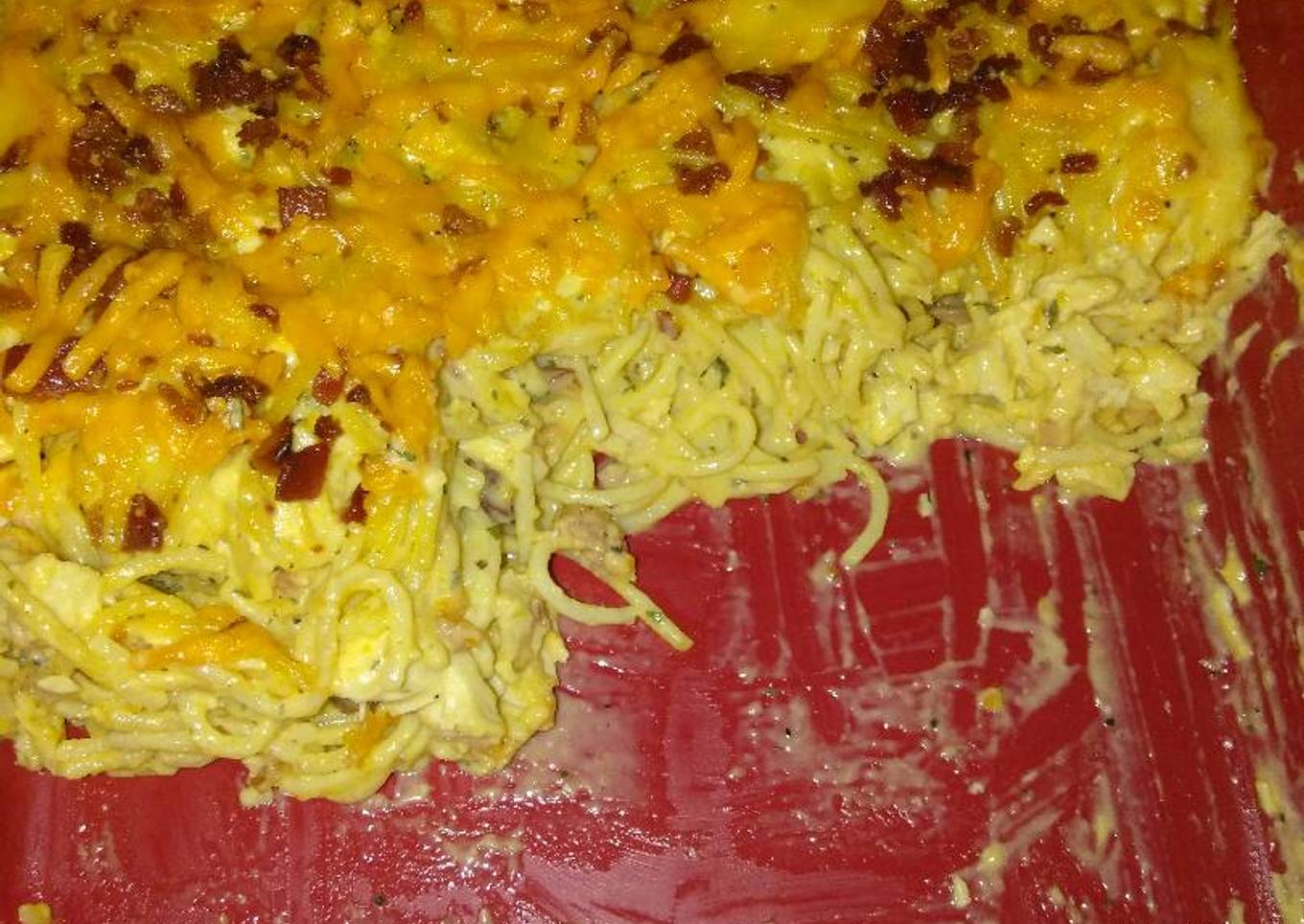 Instructions to make to make Crack Chicken Spaghetti Bake